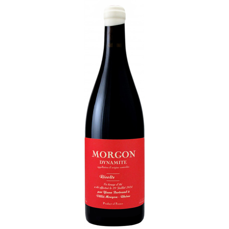 Morgon Dynamite de Yann Bertrand possède une robe rouge rubis. Son nez nous amène sur des arômes intenses de cerises croquantes et juteuses, accompagnés de notes de violettes et de poivre noir. La bouche est suave, structurée avec des tanins bien arrondis par un élevage parfaitement maîtrisé. Finale épicée, d'une fraîcheur salivante.