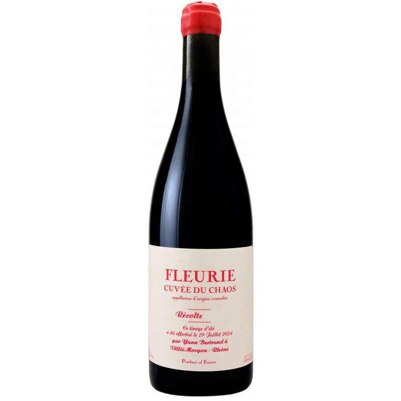 Fleurie Cuvée du Chaos 2023 du domaine Les Bertrand de Yann Bertrand est un vin rouge issu du cépage Gamay (100%), de vignes âgées d'une cinquantaine d'années. Après une macération carbonique de 20 jours, le vin est élevé en vieux fûts (50%) et en demi-muids (50%) pendant 8 mois. L'élevage se termine en bouteille pendant 10 mois après la mise.