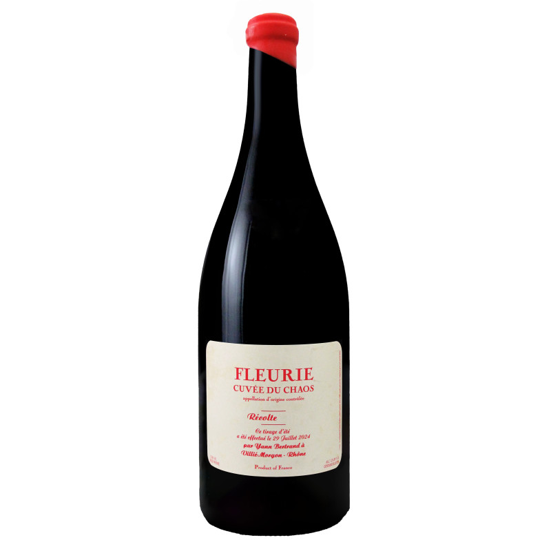 Fleurie Cuvée du Chaos 2023 Magnum du domaine Les Bertrand de Yann Bertrand est un vin rouge issu du cépage Gamay (100%), de vignes âgées d'une cinquantaine d'années. Après une macération carbonique de 20 jours, le vin est élevé en vieux fûts (50%) et en demi-muids (50%) pendant 8 mois. L'élevage se termine en bouteille pendant 10 mois après la mise.