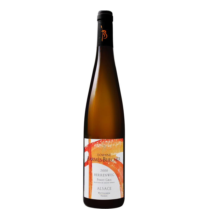 Pinot Gris Herrenweg SGN 2000 domaine Barmès-Buecher est un vin liquoreux issu du cépage Pinot Gris (100%). La maturité et la concentration, c’est là où tout commence pour une Sélection de Grains Nobles, mais c’est ensuite un prodige de la nature qui ne se produit pas chaque année, et qui permet l’enrichissement des baies par la pourriture noble.