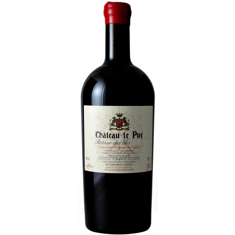 Le Puy Retour des îles 2020 Château Le Puy est un vin rouge issu des cépages Merlot (85%), Cabernet Sauvignon (15%), d’une parcelle appelée « les Rocs ». Retour des Îles est une cuvée Barthélémy qui a voyagé pendant presque 1 an en bateau.