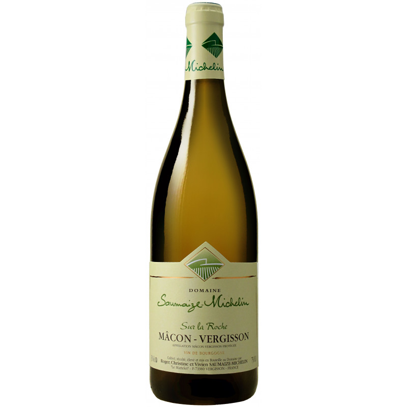 Mâcon Vergisson Sur La Roche du domaine Saumaize Michelin possède un nez sur des arômes d'agrumes et de fruits blancs. Bouche dans un registre salin et minéral affirmé.