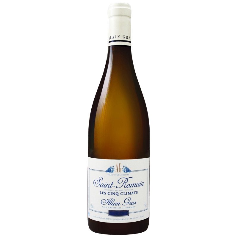 Le Saint-Romain blanc Les Cinq Climats du domaine Alain Gras possède une robe jaune avec des reflets légèrement dorés, limpide. Nez puissant, racé, de noisettes, pains grillés et de gousse de vanille. Une bouche expressive avec gras et ampleur, c’est un vin minéral avec un boisé élégant et une excellente longueur en bouche.