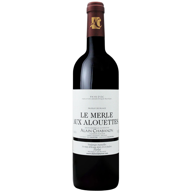 Le Merle Aux Alouettes 2019 domaine Alain Chabanon est un vin rouge issu du Cépage Merlot (100%), avec 36 mois d'élevage. Ce vin est cultivé sur la parcelle du Mas Garrigou, qui possède un sol de galets roulés sur un lit épais d'argile pure.