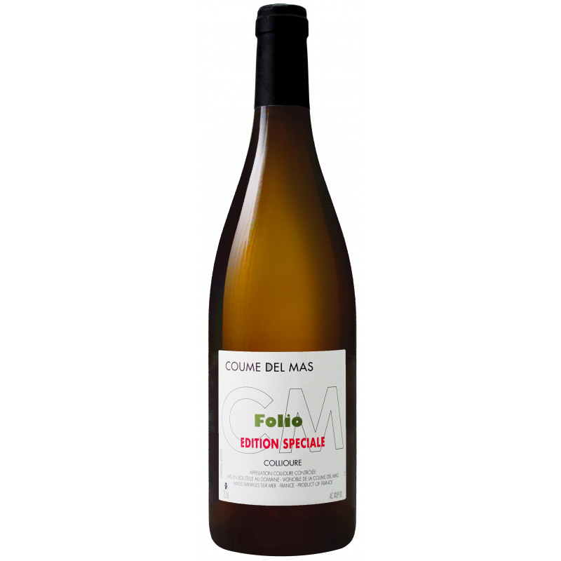 Collioure Folio Edition Spéciale 2023 domaine Coume Del Mas est un vin blanc issu des cépages Grenache gris (100%), sélection parcellaire au rendement de 18hl/ha, élevée en demi-muids.