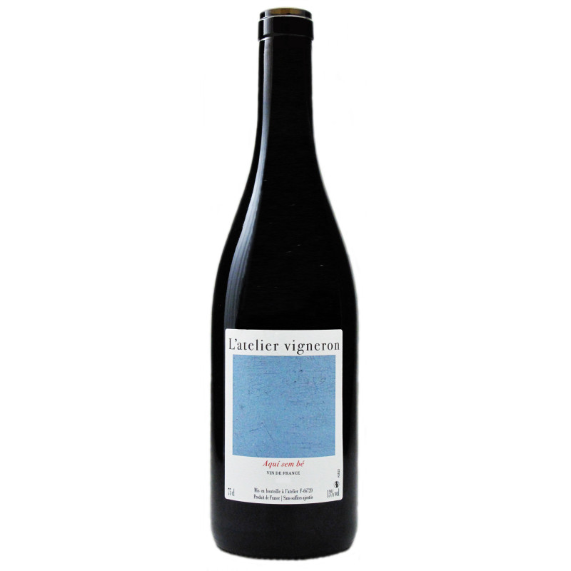 La cuvée Aqui Sem Bé du domaine L'atelier Vigneron est un assemblage de raisins de syrah et de carignan égrappés à la main, au crible (panneau de noisetier criblé de trous, posé sur la cuve), afin d’obtenir des baies intactes. Celles-ci sont noyées dans le jus déjà en fermentation des fins de presse de lladoner pelut. Macération de trois à quatre jours, pour extraire les arômes et la couleur de la peau des baies. Remontages réguliers, pigeages manuels doux. Pressurage au pressoir manuel hydraulique. Élevage de 8 mois dans deux barriques de 400 litres et dans une cuve inox. Sans soufre ajouté.