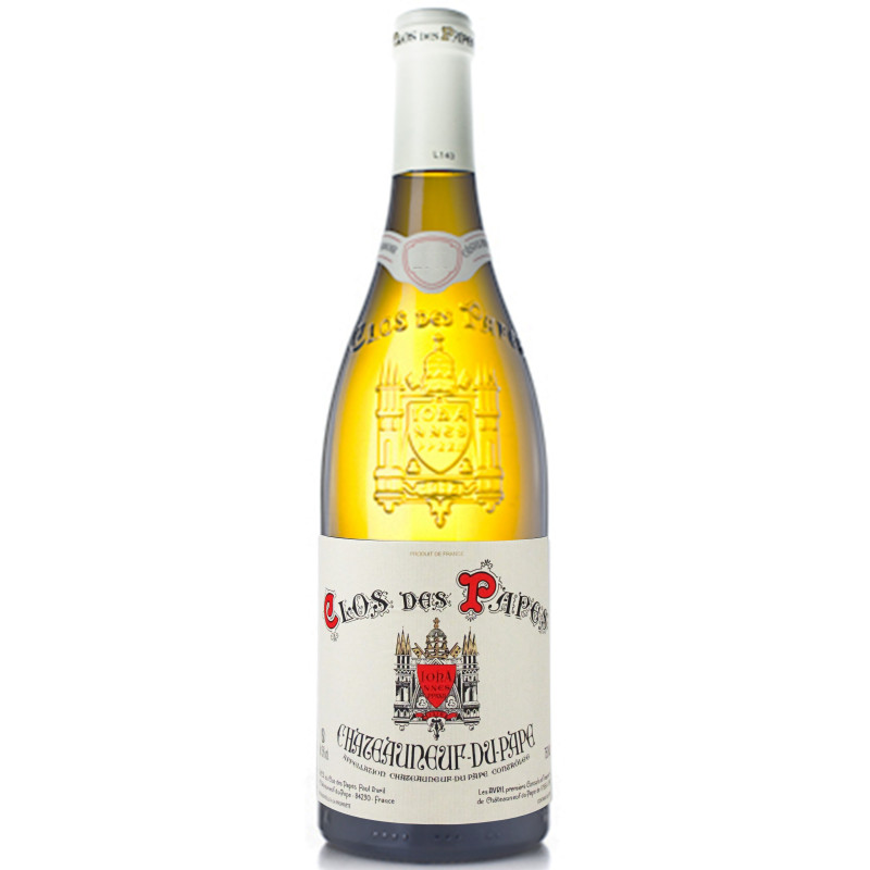 Châteauneuf du Pape blanc 2023 du Clos des Papes est un vin issu des cépages Roussanne, Grenache Blanc, Bourboulenc, Picardan, Picpoul et Clairette.