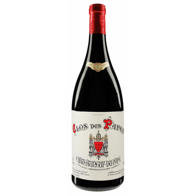 Châteauneuf du Pape rouge Clos des Papes se déguste à 15-16°C avec une daube de boeuf ou un coq au vin. Nous conseillons de carafer ce vin au moins 2h avant de le servir.