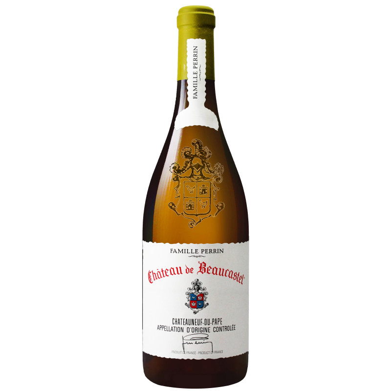 Châteauneuf du Pape blanc 2023 Château de Beaucastel (Famille Perrin) est un vin blanc issu des cépages Roussanne (80%), Grenache Blanc (15%), Bourboulenc, Picardan et Clairette (5%).