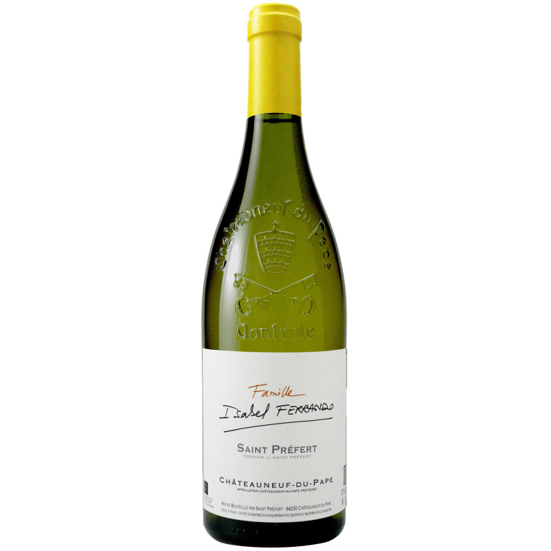 Châteauneuf du Pape blanc 2024 Famille Isabel Ferrando est un vin blanc issu des cépages Clairette (60%) et Roussanne (40%), de vignes du domaine cultivées sur le lieu-dit Saint Prefert. Un terroir de galets roulés, de graviers, d'argile bleue et de sables.